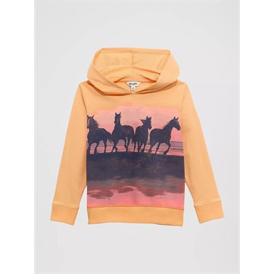 She’ll be daydreaming of Western adventures every time she wears this Girl’s Graphic Hoodie. It’s crafted from a soft cotton blend with brushed fleece to keep her cozy and warm in anything she does on the daily. This easy pullover features ribbed trim, a kangaroo pocket, and a colorful graphic of wild horses galloping at full speed.