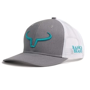 RANCH BRAND CAP GREY MESH WHITE LOGO TURQUOISE