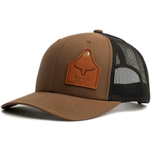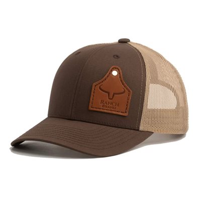 RANCH BRAND CAP COW TAG BROWN MESH BEIGE LEATHER PATCH